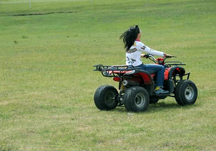 ? ? ? ?騎車草地摩托領(lǐng)略草原風(fēng)光,別有一番風(fēng)味。在領(lǐng)略大草原秀美景色的同時還可以體驗四輪越野草地摩托車, 容易駕駛,沒開過摩托車或汽車的你也可以,剎車、油門就這么的簡單,當(dāng)駕著它在草原上飛馳,一掃繁重的工作和緊張的節(jié)奏,藍天白云下,牛羊在悠然地散步,駿馬奔馳起來,牧民們揮舞長鞭,引吭高歌,那極具張力的歌聲充滿著自豪和喜悅,駕駛著四輪越野摩托,在草原上風(fēng)馳電掣地奔馳著,真是暢快淋漓!
