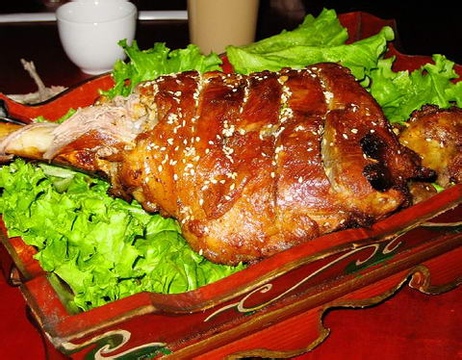烤全羊是蒙古民族的餐中之尊,是宴席上的一道講究的傳統(tǒng)名菜,其形、色、味,具有濃郁的民族風(fēng)味。上席時(shí)烹制者將