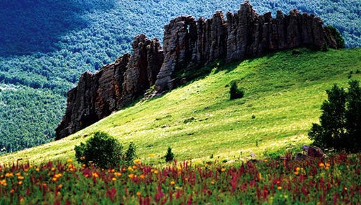 專家們稱之為世界奇觀——中國阿斯哈圖石林。 石林背靠一望無垠的樺樹林海,崢嶸奇峻,千姿百態(tài),放眼望去,或如寶塔古堡,或如靈禽神獸,栩栩如生,渾然天成,令人拍案叫絕。站在北大山上,遠(yuǎn)望石林,猶如古代城堡,平地凸起,崢嶸險(xiǎn)峻,滄桑破敗。近品石林,千姿百態(tài),如塔、如筍、如人、如獸,呼之欲來,趨之欲動(dòng),猶如人工刻意雕琢,使人驚嘆大自然的鬼斧神工。