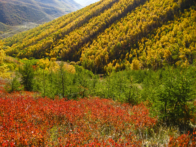 黃崗梁林海地處內(nèi)蒙古植物、華北植物以及東北植物區(qū)系的交匯地段,富集天然原始森林85萬畝,極具生物多樣性。林草中四十余種名花異卉,五十余種名貴中藥材遍布群山,林中盛產(chǎn)蕨菜、金針、蘑菇等二十余種山野菜。山谷間山釘子、山梨等野果次第叢生,素有“花果山”之稱。這里山高林密,獐、狍、豹、狐貍、野豬、斗雞、山雞等野禽獸出沒于叢林間,是理想的休閑狩獵之所,占地三十二萬畝,處在內(nèi)蒙古植物、華北植物以及東北植物區(qū)系的交匯地段,生物呈多樣分布,崇山峻嶺中以天然林分布為主,自然景觀有天然森林景觀、白樺與山楊樹叢景觀、針闊葉混交林草地景觀、山地草甸景觀。這里草茂林豐、山清水秀,林草中四十余種名花異卉,五十余種名貴中藥材遍布群山,故有千花百藥之山的稱為。林中盛產(chǎn)二十余種山野菜,其中蕨菜、金針、蘑菇為菜中三珍。山谷間各種野果次第叢生,素有“花果山”之稱。這里山高林密,獐、狍、豹、狐貍、野豬等野獸三十余種,斗雞、山雞等山禽十幾種,還是理想的休閑狩獵之所。